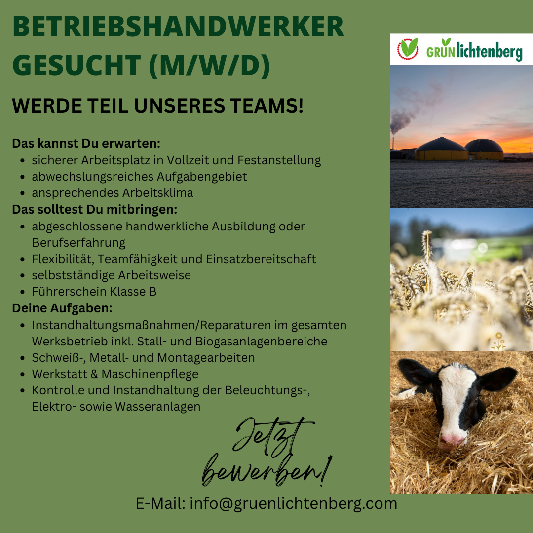 Wir freuen uns auf Deine Bewerbung an info@gruenlichtenberg.com