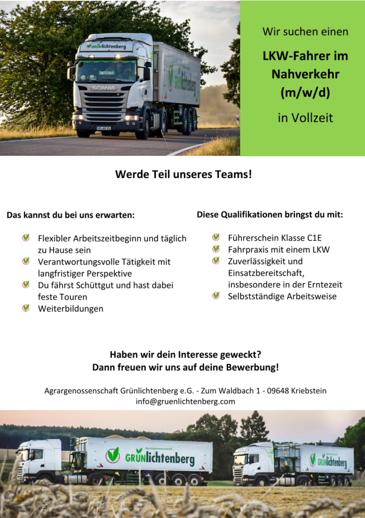 Herzlich Willkommen bei der Agrargenossenschaft Grünlichtenberg e.G.. Wir sind im wunderschönen Mittweidaer Zschopautal ca. 30 km nordwestlich von Chemnitz im Freistaat Sachsen beheimatet.
